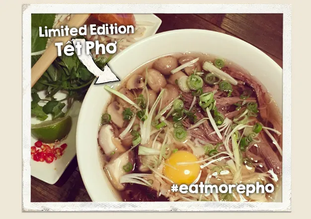 Pho, the Vietnamese noodle chain, has introduced a noodle soup to ring in the Vietnamese New Year. Only available until February 23rd, the soup contains pulled beef brisket, enoki, shiitake and button mushrooms, with an egg yolk and beef stock.