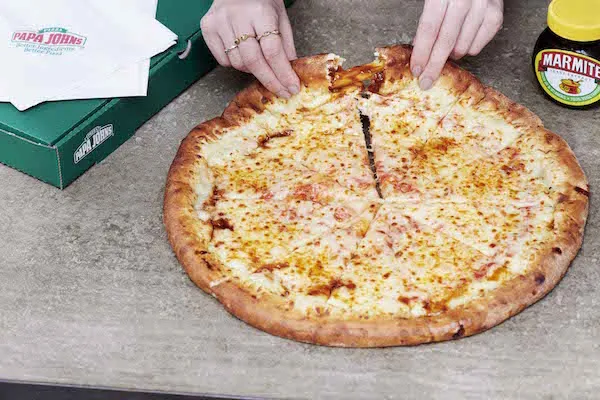Papa John's once again partnered with Marmite to spread the partnership beyond the pizza chain's side menu and into the crusts of their pizzas.